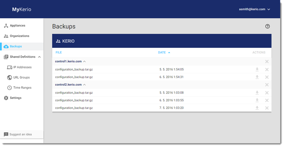 وارد کردن پشتیبان های تنظیمات به Kerio Control